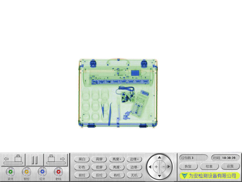 功能特点:X射线穿透检查;采用逐行扫描方式,分辨率高、使得图像稳定清晰、能快速辅助检查人员检测金属小件物品、打火机易燃易爆物品进行检查。设备体积小、重量轻、耗电低,自诊断功能完善,便于操作和维修。